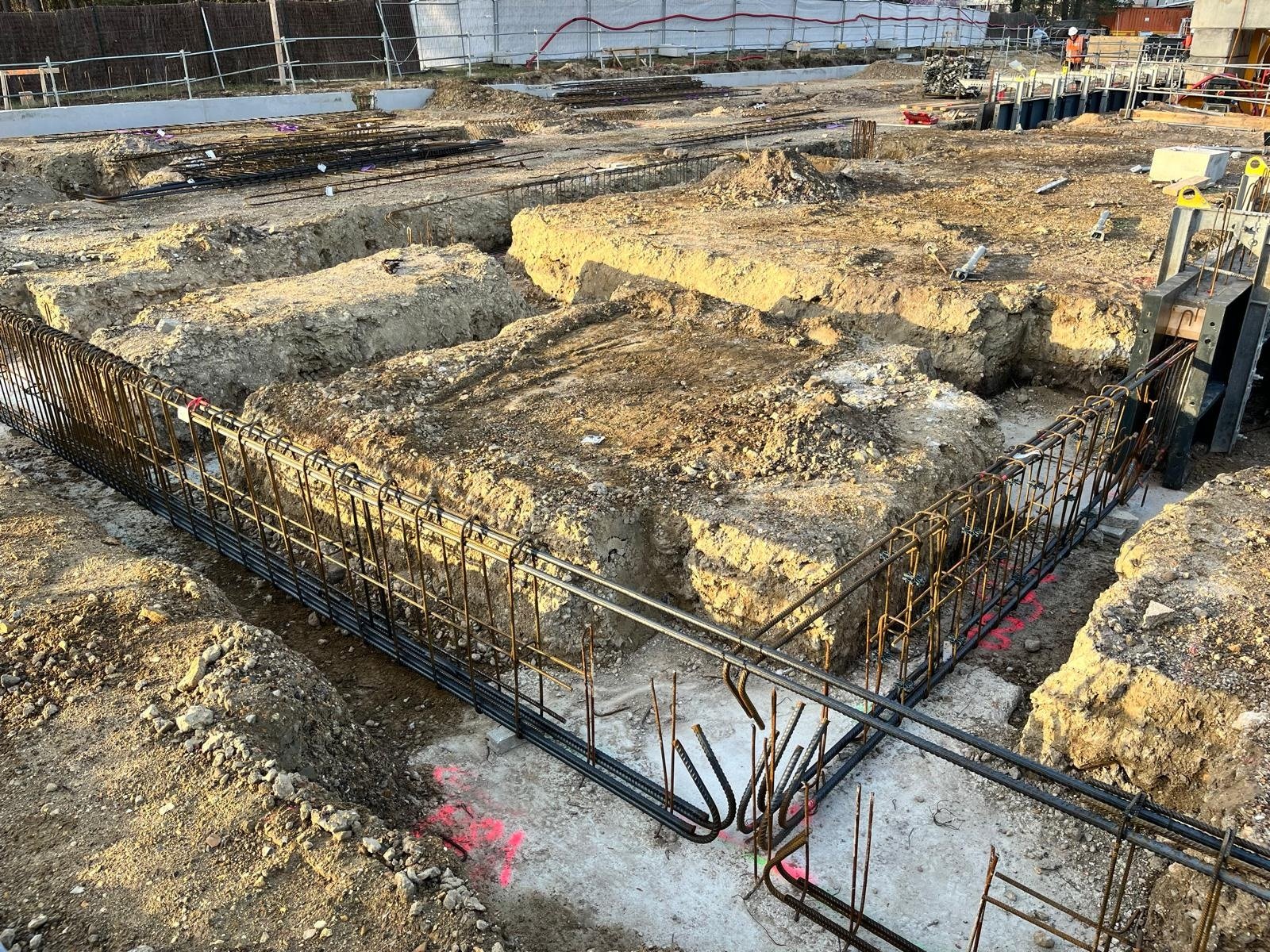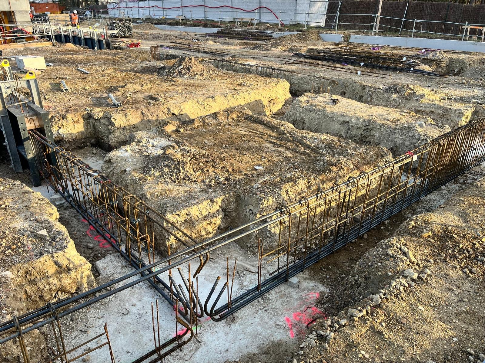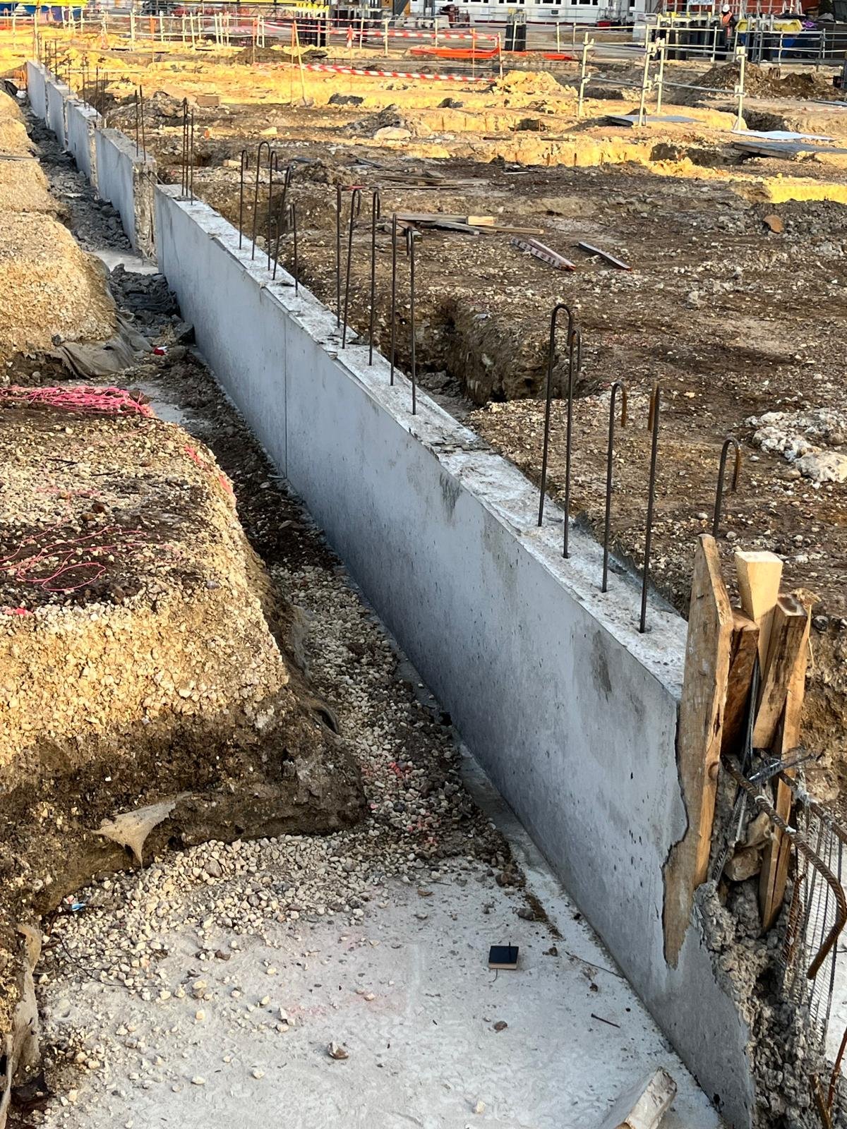 Cette étape marque l’achèvement du cycle fondations et constitue une base structurelle stable pour la poursuite du gros œuvre.