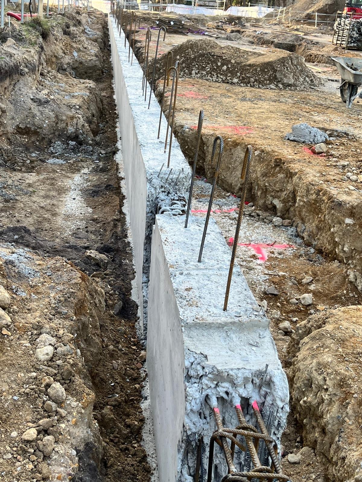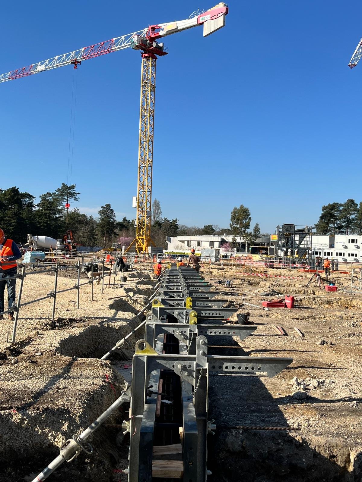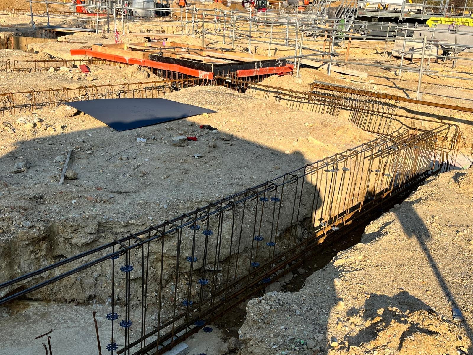 Cette étape marque l’achèvement du cycle fondations et constitue une base structurelle stable pour la poursuite du gros œuvre.
