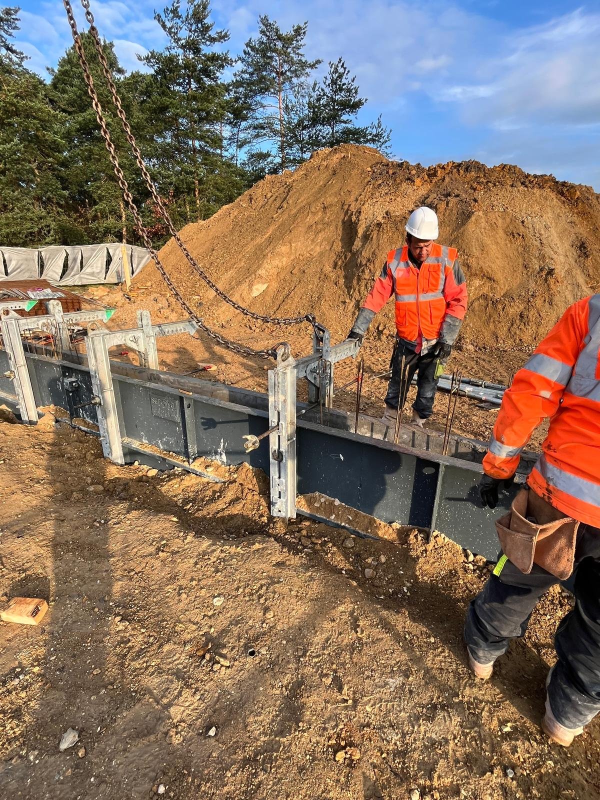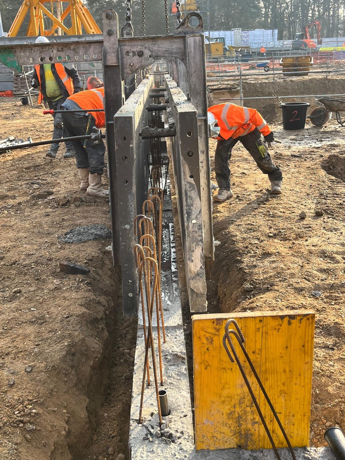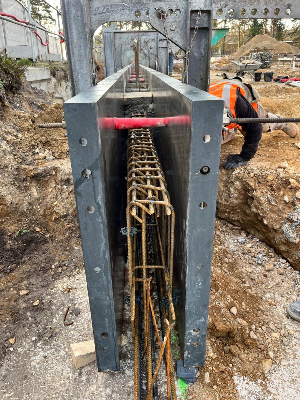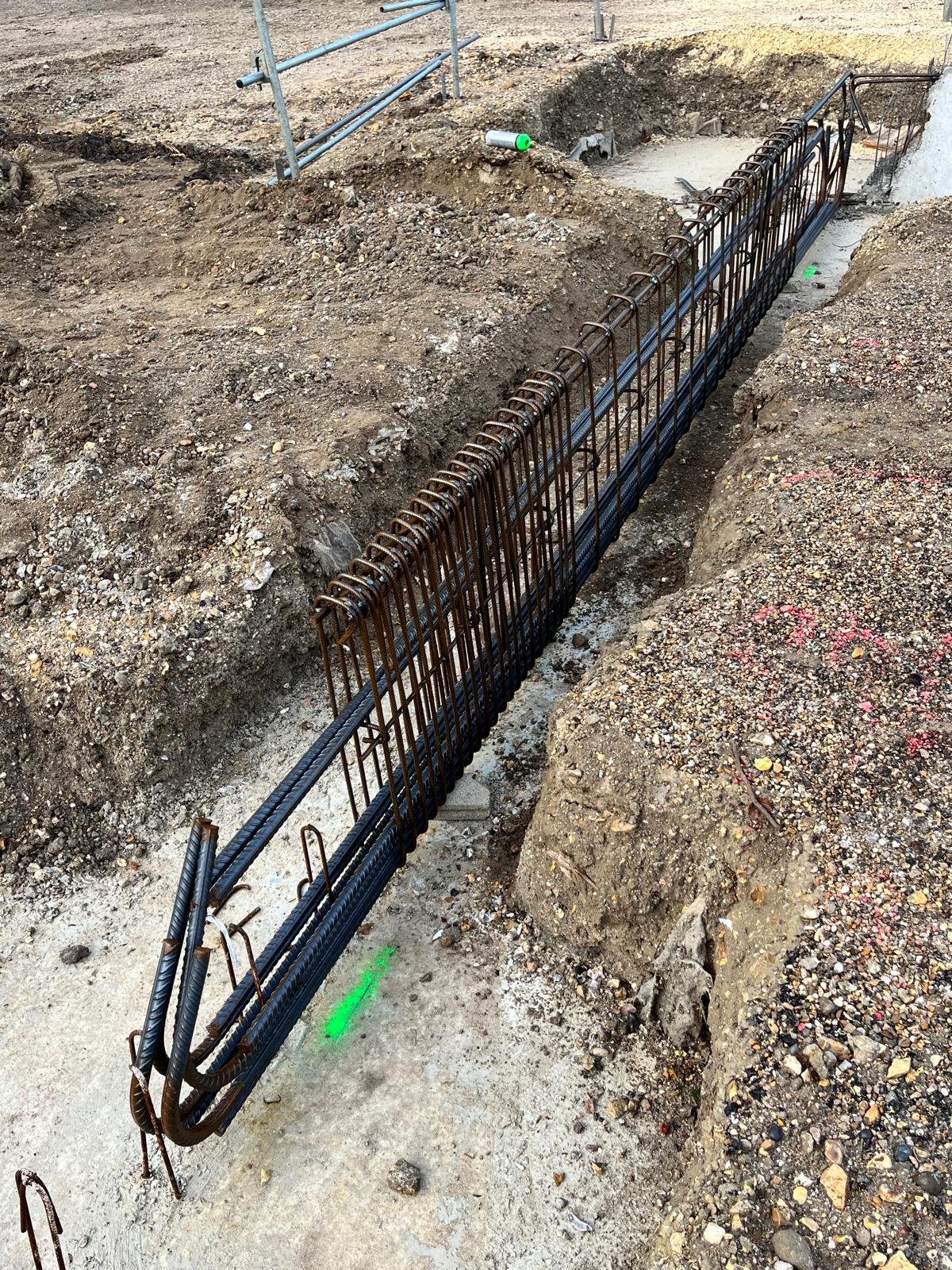 - Mise en place des cages d’armatures préfabriquées ou montées sur site,