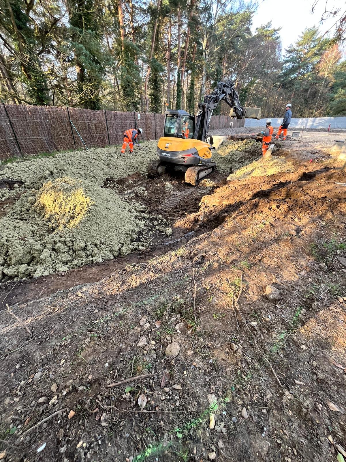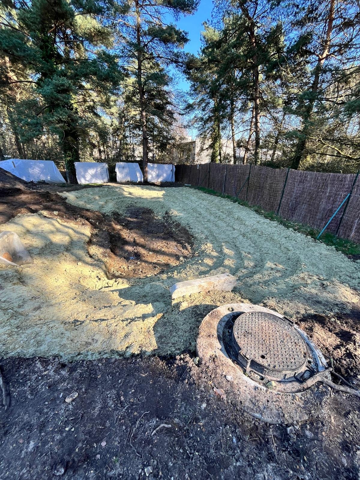 Dans le cadre de l’exécution des travaux, une phase spécifique a été consacrée à la réalisation d’une mare sèche, conformément aux prescriptions établies par l’écologue en charge du suivi environnemental du chantier.